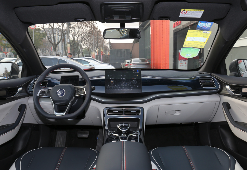 秦PLUS DM-i内饰设计层次分明,中控台液晶屏最大尺寸可达12.8英寸,支持自适应自动旋转功能。仪表盘采用精致小巧全液晶数字仪表。