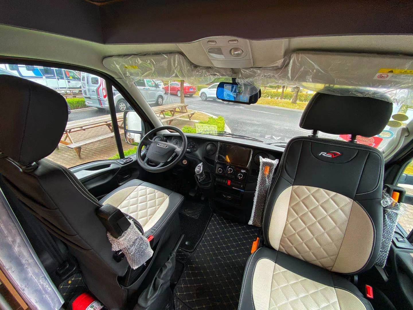 主驾区域非常宽敞,该车采用了黑色+米色的驾驶室配饰风格。瑞弗V820带有倒车影像,倒车雷达,四路监控系统。座椅则采用了乘用车调节滑动座椅,副驾座椅可以180°旋转。