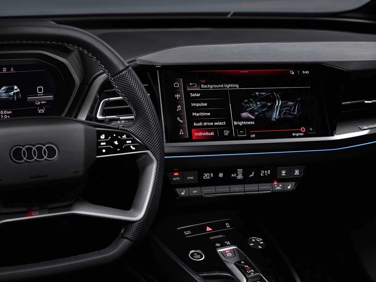 此外,普通款配备了带听觉反馈的10.1英寸MMI触摸屏,分辨率为1,540 x 720像素。该设备标配MMI收音机及数字音频广播(DAB)接收机。另外,屏幕支持手写文本输入。11.6英寸大屏可选装,分辨率达1,764 x 824像素,是迄今为止奥迪所有产品序列中最大的显示器。