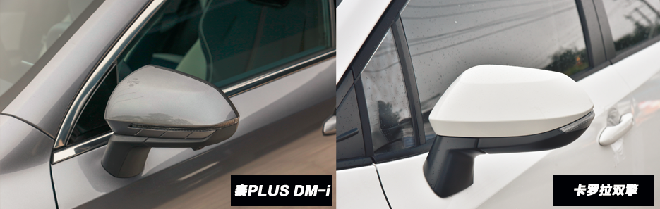 大灯方面,秦PLUS DM-i配备的是LED大灯,卡罗拉双擎配备是卤素大灯。两车都支持自适应远近光灯、LED日行灯、自动头灯和大灯高度可调功能。秦PLUS DM-i还多出大灯延时关闭功能,卡罗拉双擎则多出LED前雾灯。外后视镜方面,两车外后视镜都支持电动调节和加热功能,秦PLUS DM-i还多出外后视镜电动折叠和锁车自动折叠功能。