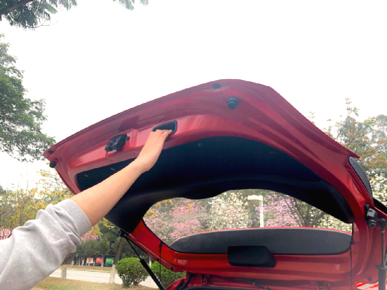 说到这里,有一点要吐槽的是后备箱门比较重,对于女生而言需要较大的力气。此外,后备箱门上方还设置了一个拉手位置,看着方便但却相当不实用。当后备箱门往下拉到下端后,拉手位置是完全够不到的,最后还得按原来的方式关闭,有些多此一举。对于女生而言,后备箱门还比较重。