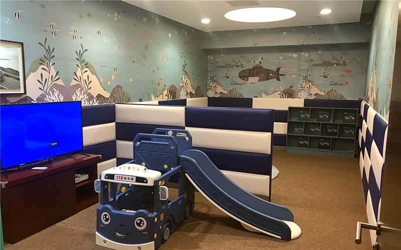 客休区分为两个,其中一个含儿童区,沙发都是独立的软座。