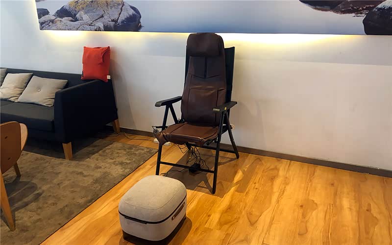 但从售前可以看到,整体风格很北欧,装潢很宜家。虽是午饭时间,仍能看到销售人员在为客户跑前跑后。即便是售前也有一个浓缩版的客休区,销售人员告知,如果想体验更舒适的按摩椅,请移步售后区域。