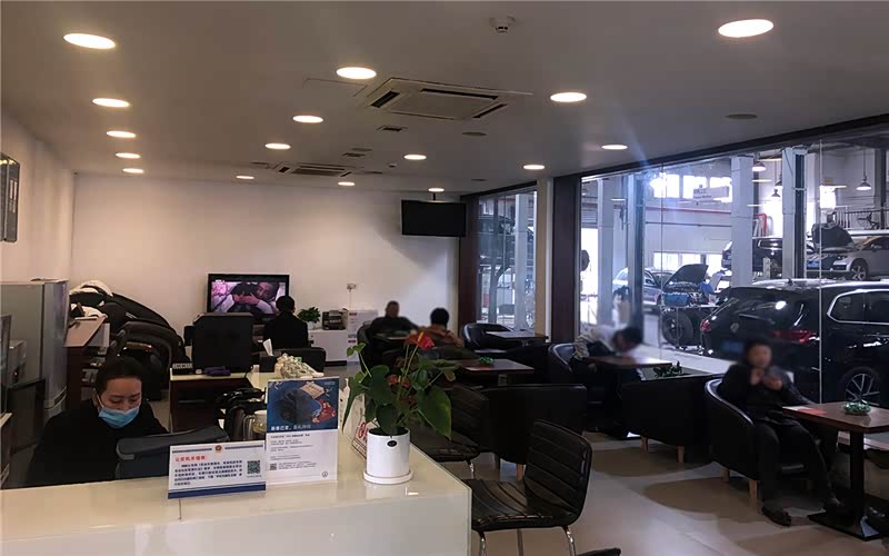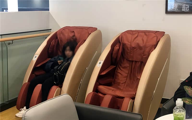 一楼的洽谈区也可以用于客休,座位宽敞舒适,与二楼客休区的风格统一,其中一个客休区可以看到售后维保情况,公开透明,不想看了,那就转头看看剧,或者换个地方按摩一下也行。
