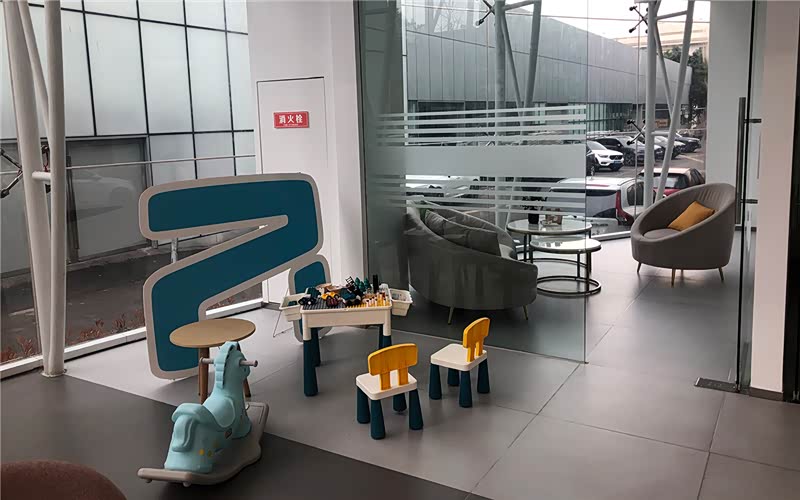 从客休区的风格来说,上汽R是更接新能源地气的,简约清新。由于店面规模限制,客休区格局挺像一个大型的交流会现场,洽谈区反而更像独立而舒适的客休区,门口还配有一个小型的儿童区。