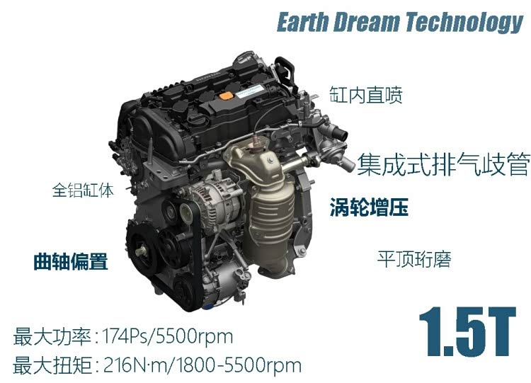 而要说到技术先进,我们应该着重提到在广本雅阁上服役的L15BN 1.5T发动机,作为第二代产品,其相比思域上那台在排气侧增加了可变气门升程控制系统,也就是我们熟知的本田i-VTEC,数据也来到了194马力/260牛米。