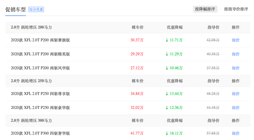 2020款捷豹XFL动力上搭载了2.0T发动机,最大输出功率为200马力、250马力和300马力,传动系统匹配的是8挡手自一体变速箱,最高车速达到了250km/h,动力输出上十分充沛,是比较符合雷厉风行的女强人的。