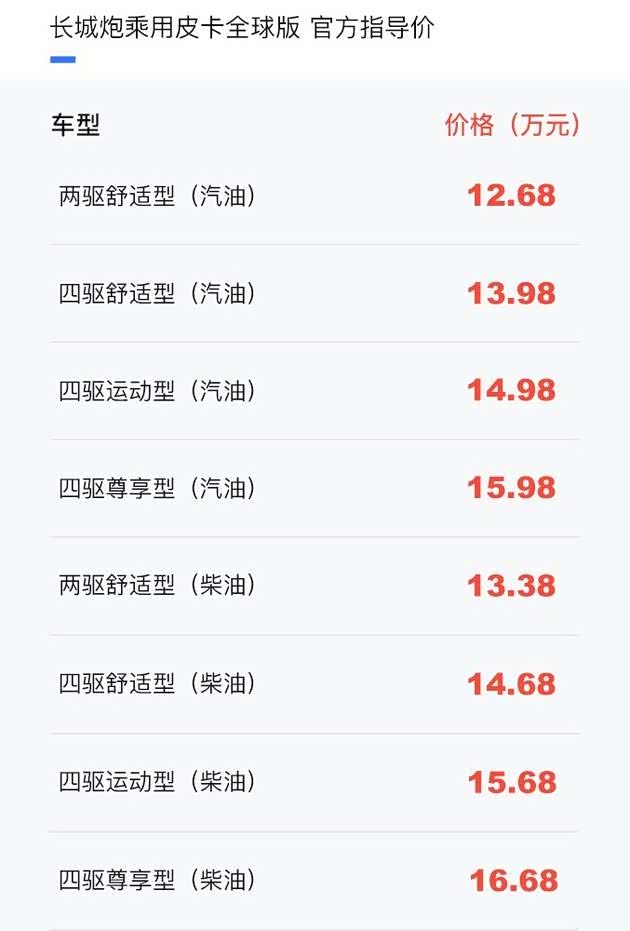 同时意味着,国内销售的全球版与出口海外版本相同,并不会出现某些人口中说的“出口就好”的情形。全球版作为长城炮2021款乘用版本中的改款车型,我们见到了一些细节之处的改变。