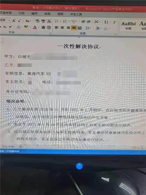 由于正值过年期间,石先生所在的城市也遇到了疫情的侵扰,所以按照防疫相关规定石先生并不能按时去到4S店签署和解协议。当过年后石先生再次去到4S店准备签署和解协议的时候,4S店却对这份和解协议表示不认可,并且当石先生再次向黄海官方反应时,得到的回复却是其投诉已经解决了,所以黄海汽车也没有帮其跟进的必要。此时,石先生陷入了两难的境地。