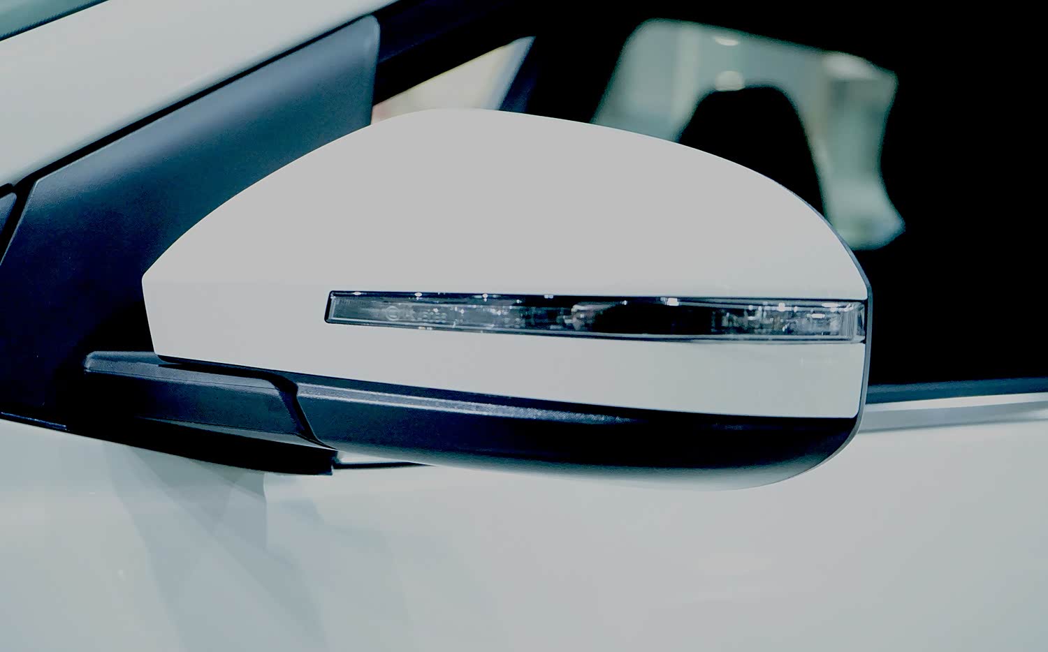 外后视镜采用降低风阻的斜面造型,采用黑色底座+车身同色外壳,集成了LED侧转灯,并未配置侧置摄像头,功能上仅有电动调节,比较单一。