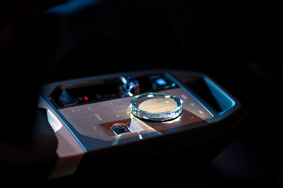 中央控制台和仪表板上的控制面板也采用了全新的极简设计,其中 iDrive控制旋钮采用了带水晶质感的玻璃装饰,并搭配镀青铜金镶边,中央控制台采用高档美学材料,拥有主动触觉反馈功能,可用于选择iDrive菜单、切换“My Modes”(主题模式)模式以及其他功能。升级之后,车内按钮和开关的数量减少了近一半,语音控制和触控功能成为了控制理念的核心。