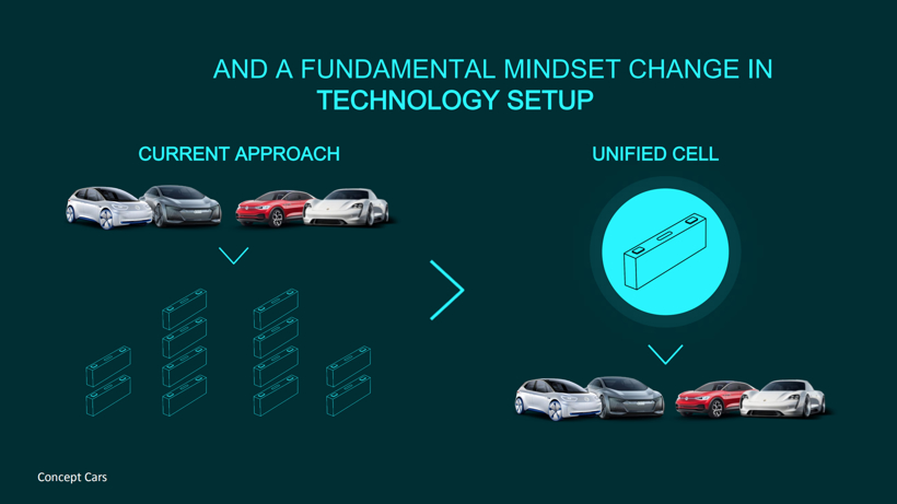 宏观目标有了,具体应该怎么实现呢?首先还是从电池开刀。从2023年起,大众就将推行电芯标准化的策略,就像18650电芯曾经带给特斯拉大幅优势那样,以大众自己的方式优化成本。