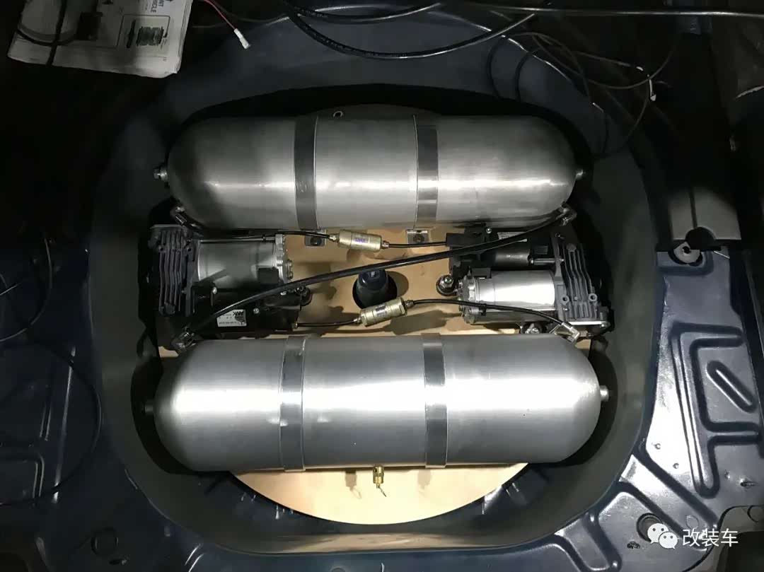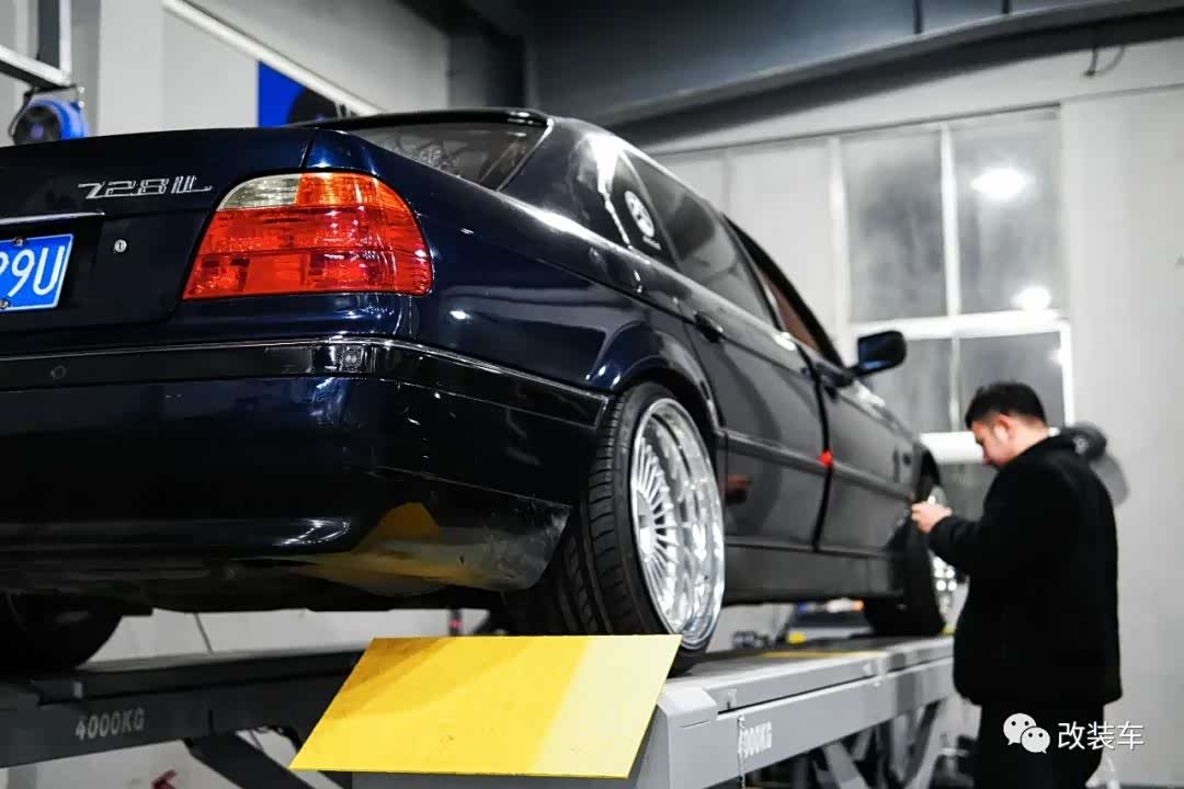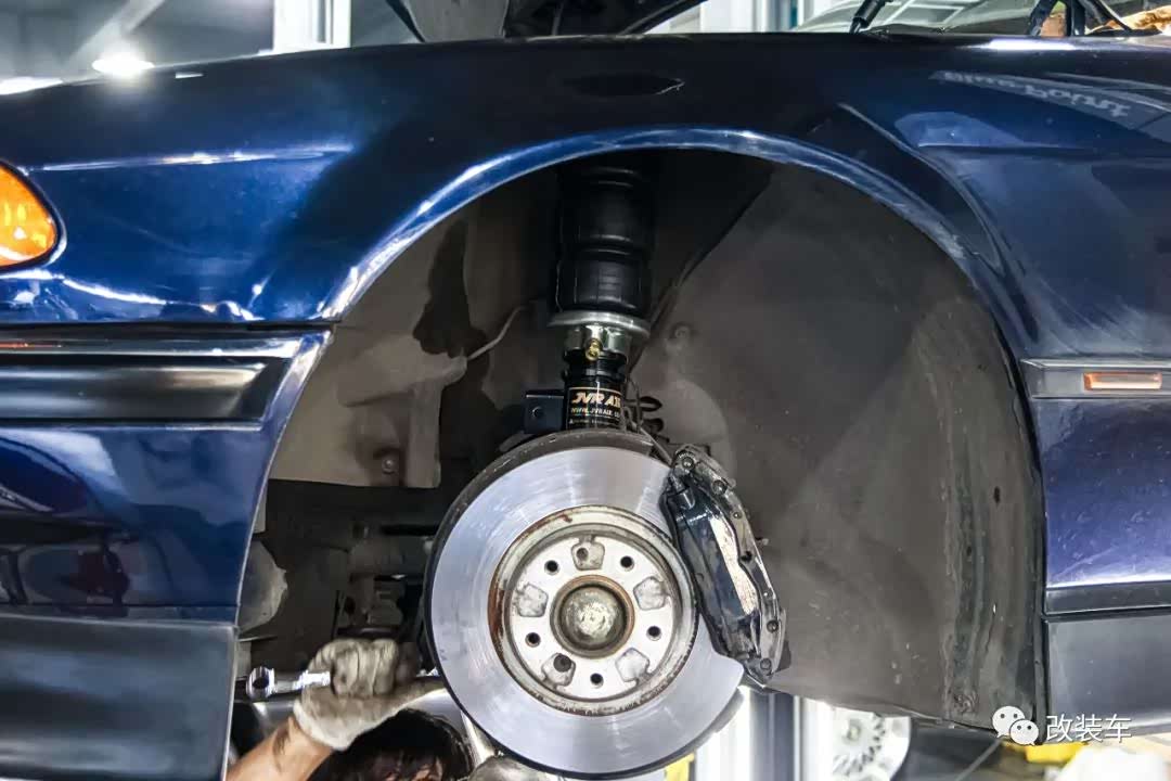 在修复基本完成后,小朱决定用这台车来走姿态,等车子降下来之后绝对是大佬级别的,在气势上不输W140奔驰S级。玩老车的每天都是惊喜,时不时亮起的故障灯已经让车主非常心累了,所以在改装零件的选择上尽量选择质量更好的,于是他便购入了这套Air Lift 3H气动避震,并更换了一套定制的19寸双片锻造轮毂。