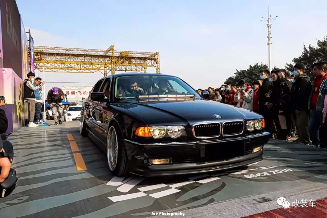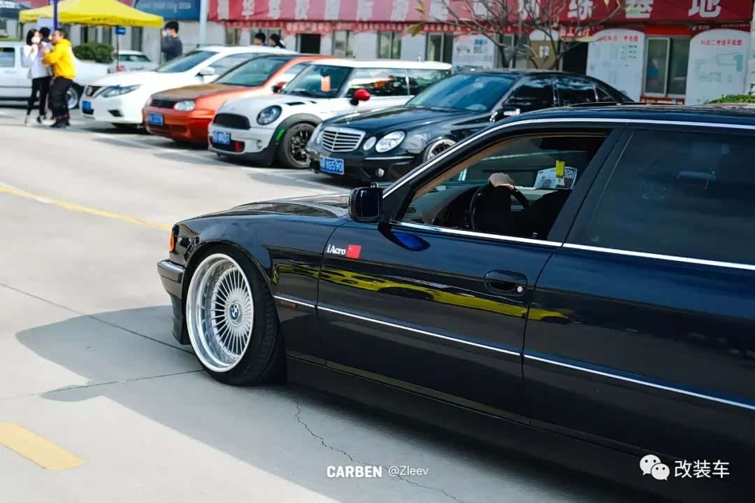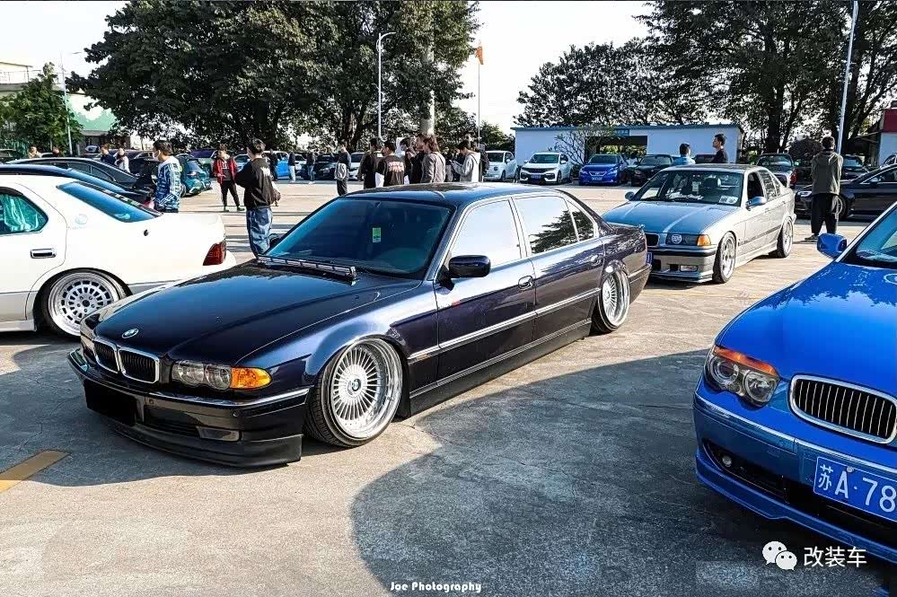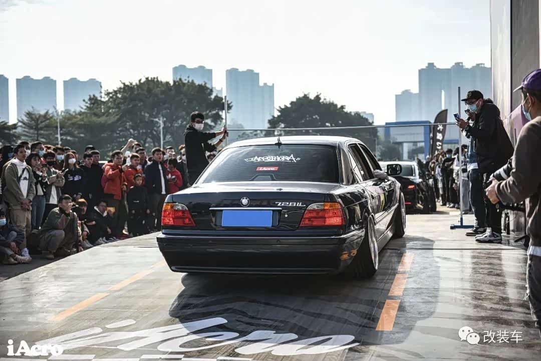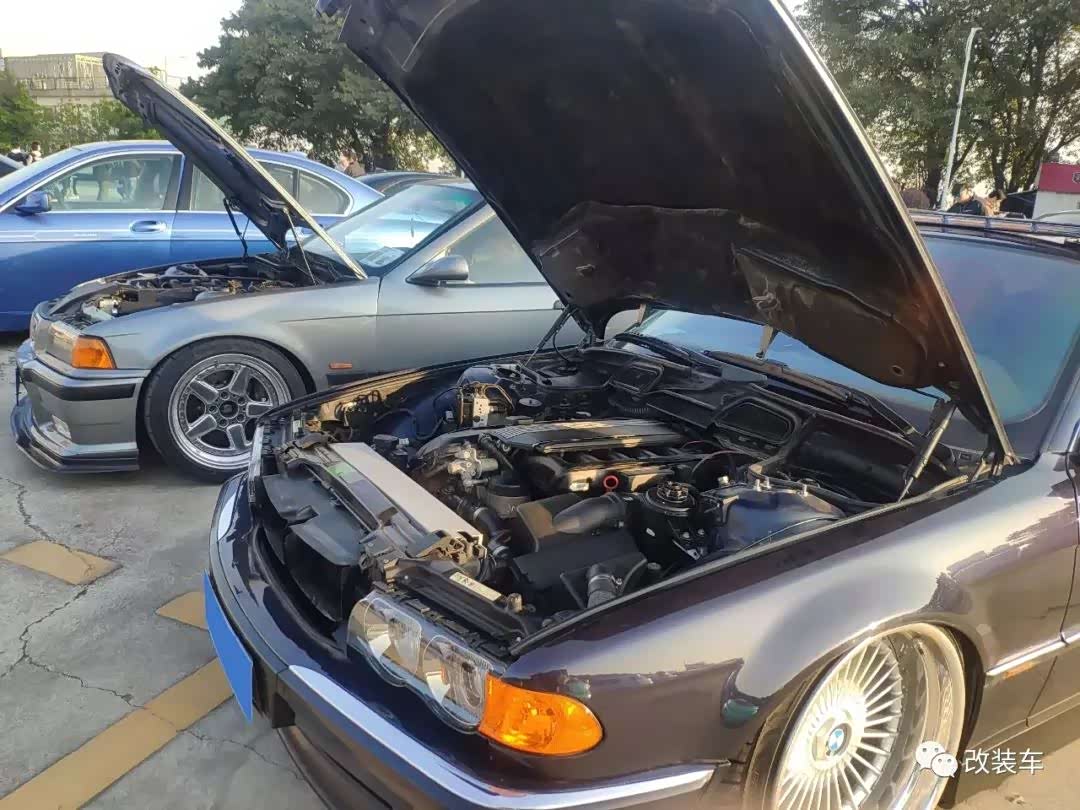 车子整体改装好了以后,正好在广州有一场由IAcro举办的十万伏特聚会,于是小朱便用板车把这台728拉了过来。大王级的姿态以及它极其稀有的程度让这辆车一下子成为了大家的关注点,和M3摆在一起在气质上绝对是碾压性的。