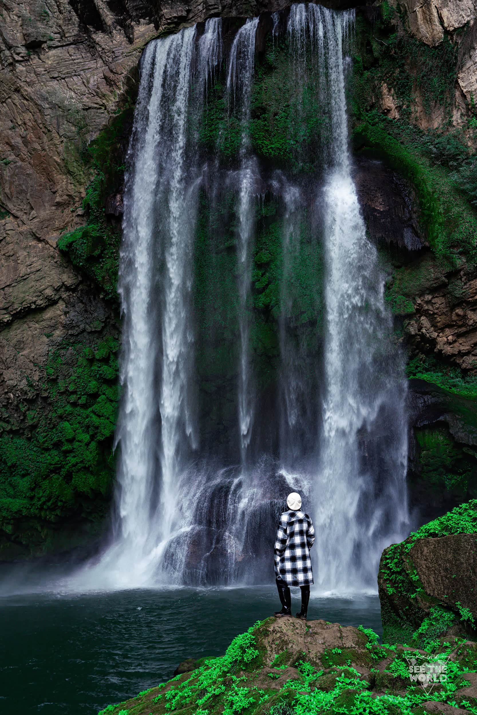 不用去冰岛,就能翻山越岭,穿过泥泞山路,来到冰岛塞里雅兰瀑布同款的羊皮洞瀑布。