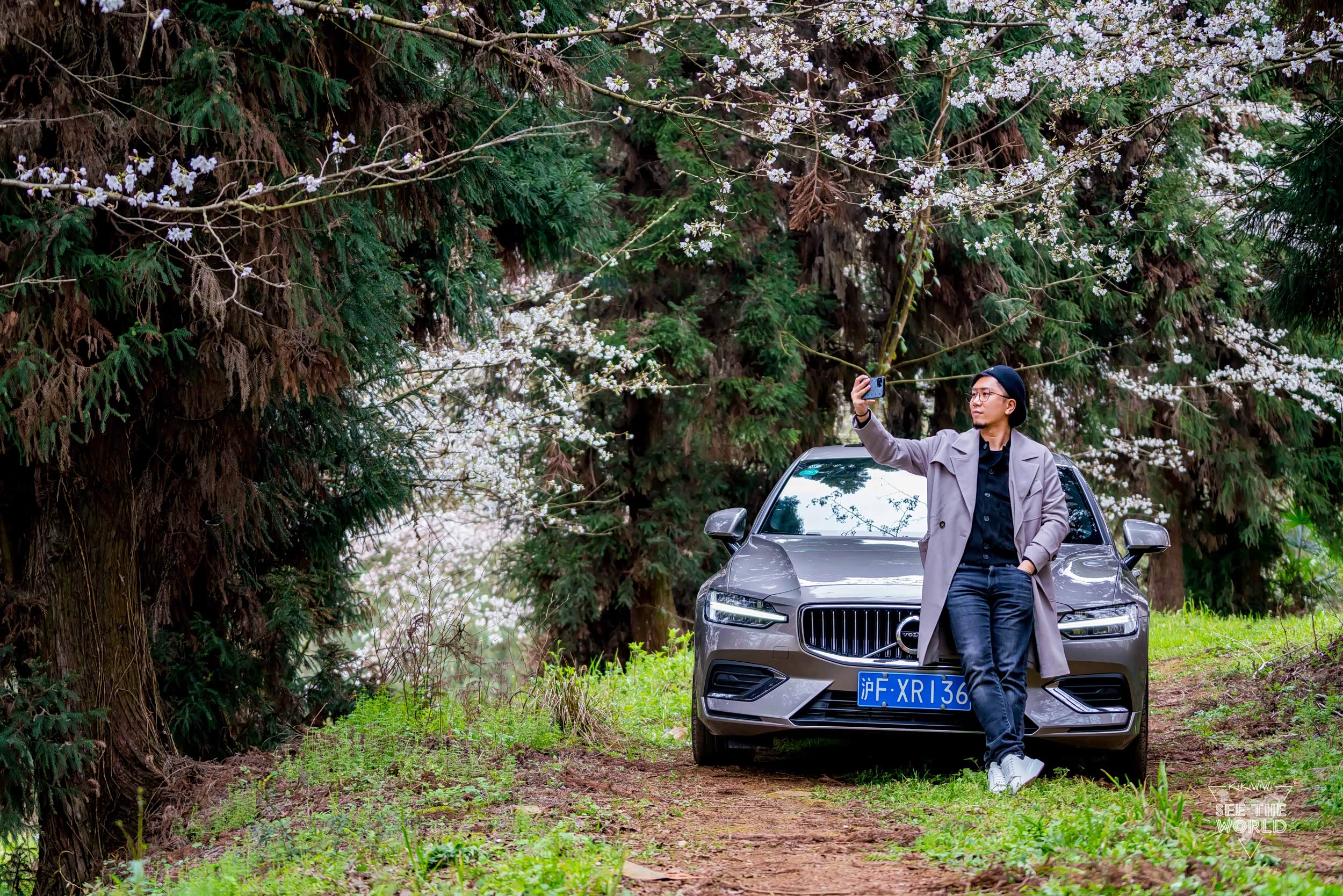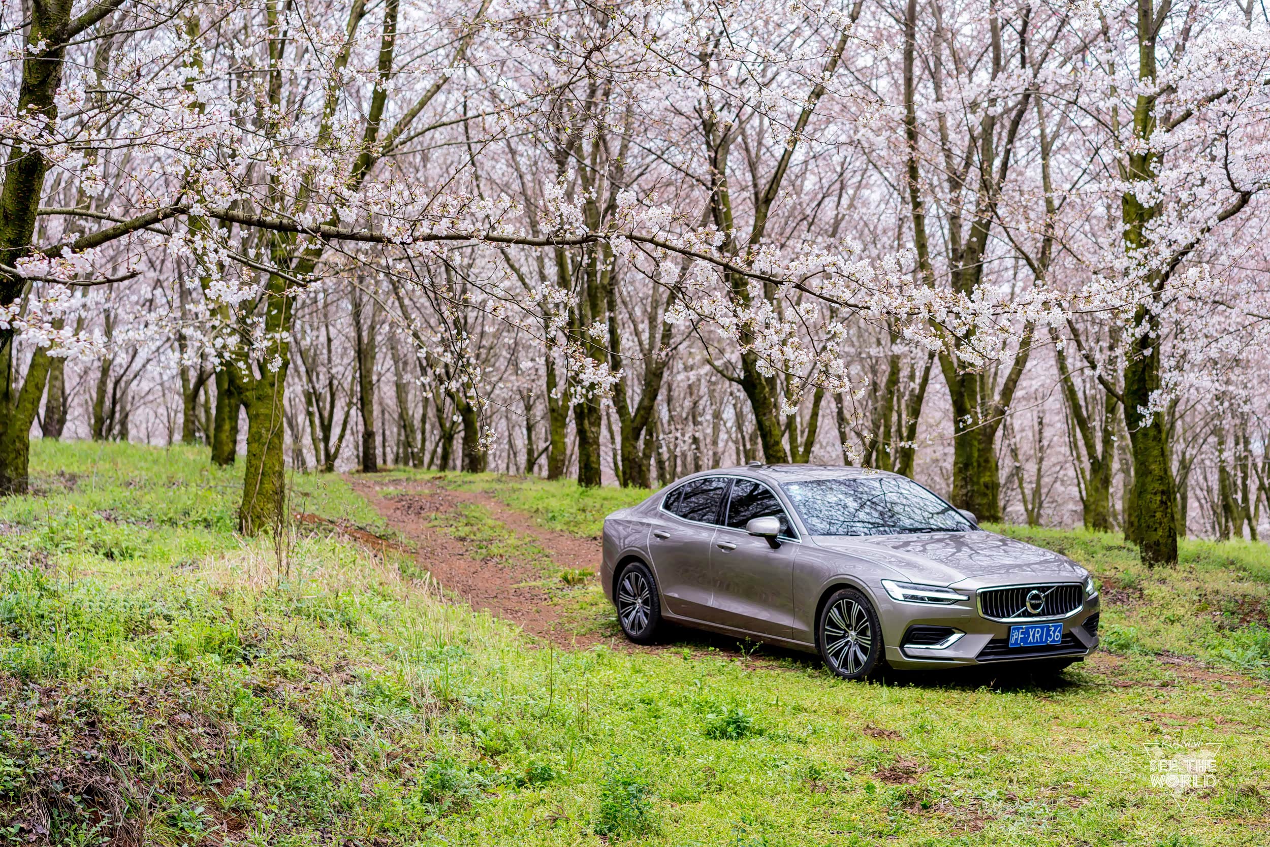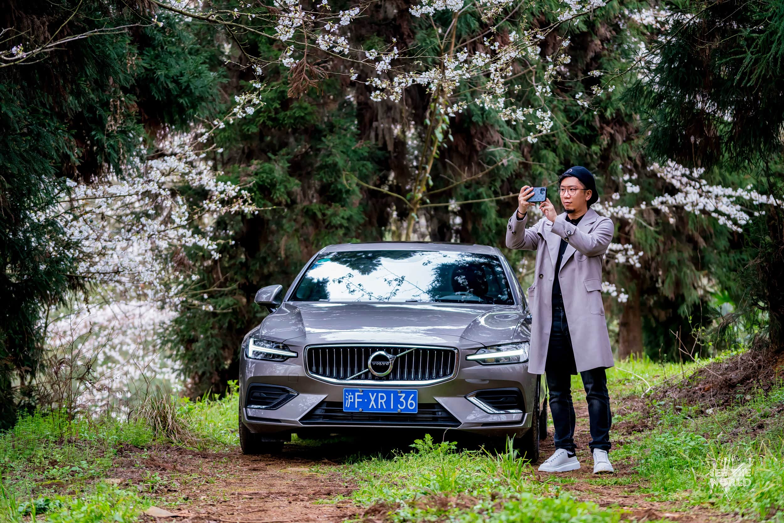 因为来这里刚好赶巧,可以将VOLVO S60开进樱花林旁边的停车场里,它的简约北欧风车形与浪漫樱花景色相互搭配,是樱花树下独特的一抹风采。