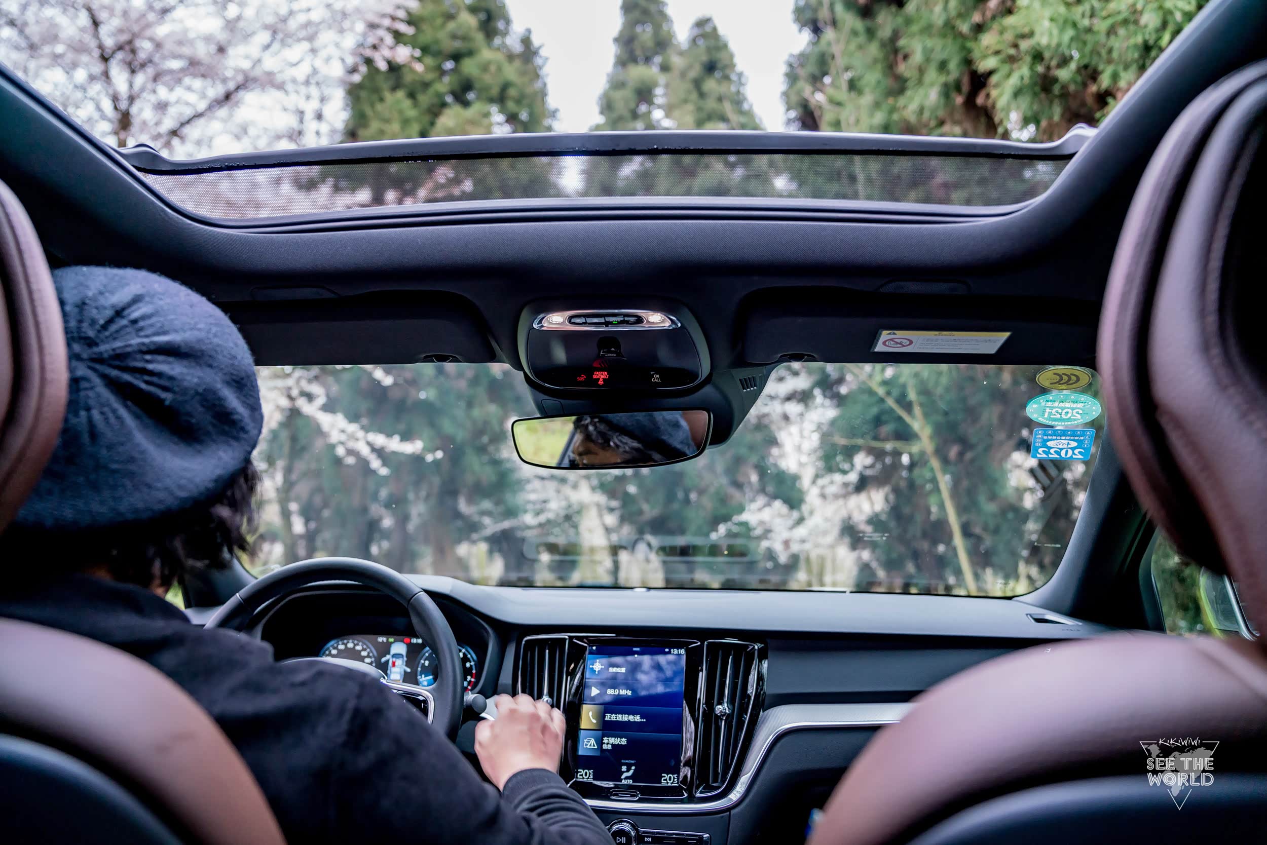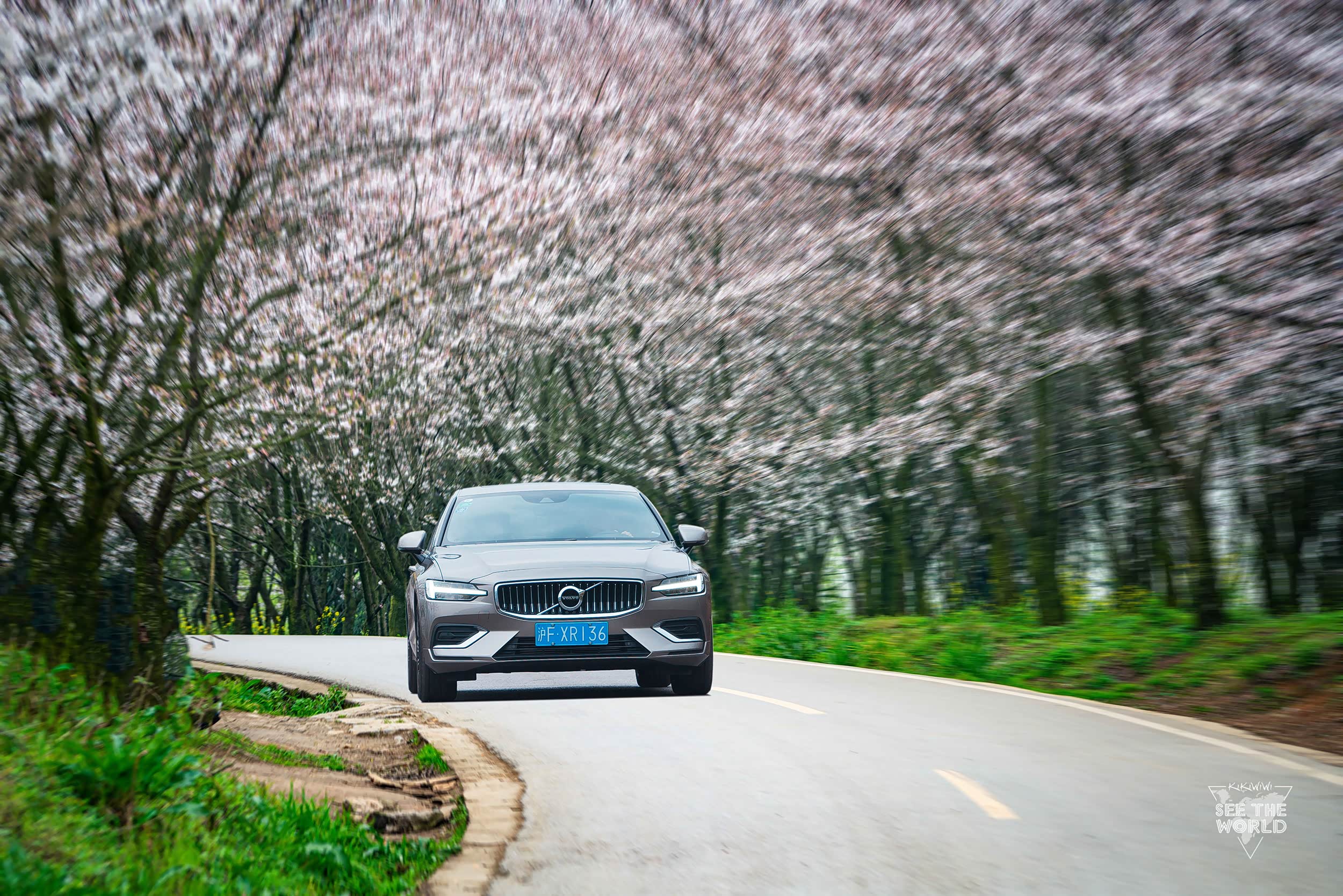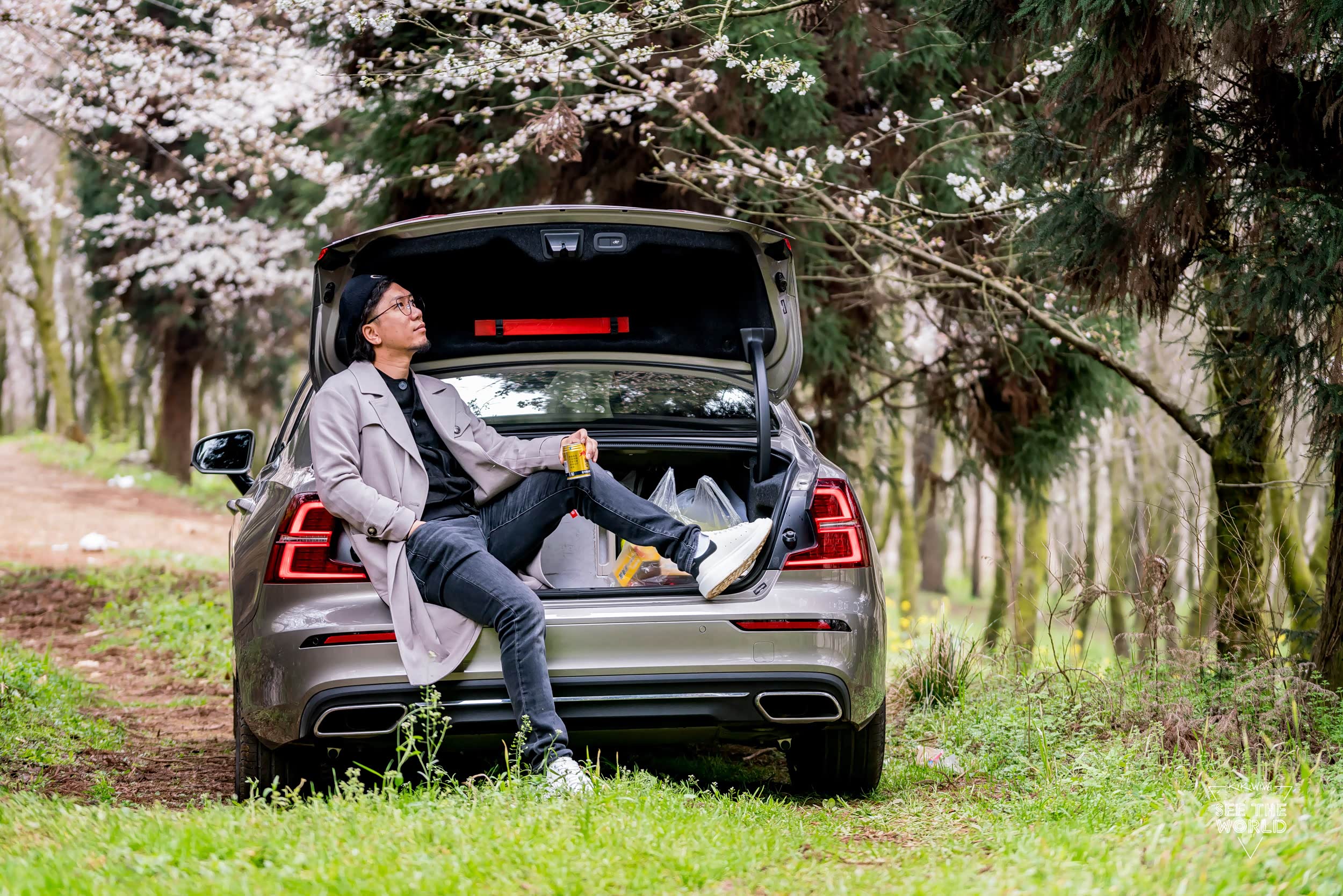 因为来这里刚好赶巧,可以将VOLVO S60开进樱花林旁边的停车场里,它的简约北欧风车形与浪漫樱花景色相互搭配,是樱花树下独特的一抹风采。