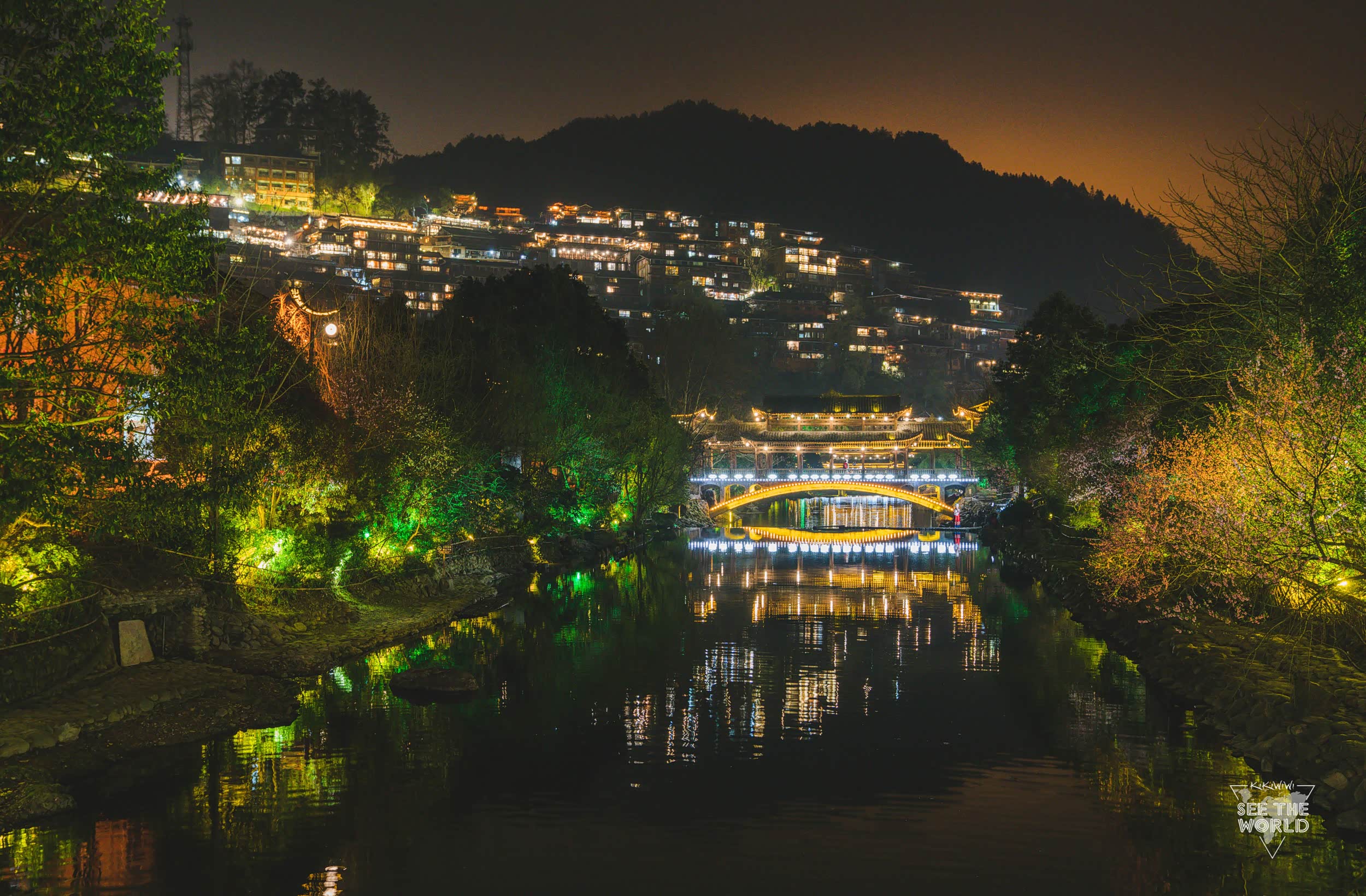 千户苗寨的夜景也是决不能错过的,每到黄昏时分,千家万户就亮起了灯,天色越暗,就变成一片灯的海洋,可以看到苗寨呈现那牛头的形状,很震撼,拍照也非常出片。