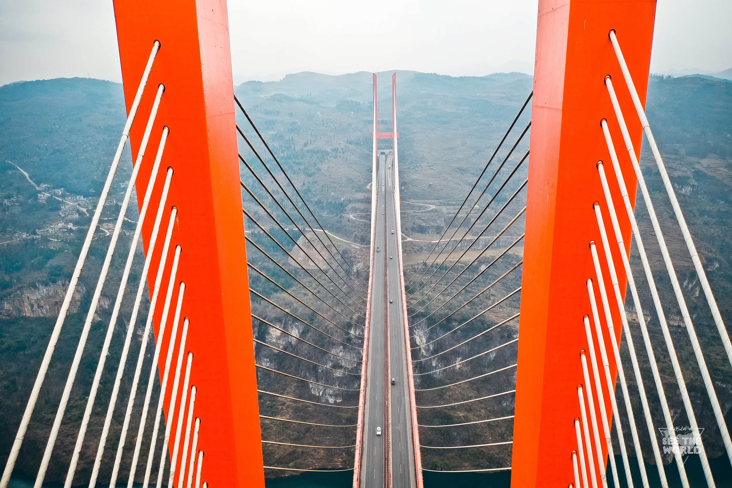 是贵州省境内连接毕节市与贵阳市高速通道,位于鸭池河水道之上,线路全长1240米,主跨长800米。是世界上最大跨径的钢桁梁斜拉桥,也是世界第五大桥,桥身是耀眼的红色,横跨鸭池河,行驶在大桥上,打开超大视野全景天窗,感受一把前景和天窗的宽阔视野,非常大气舒适。