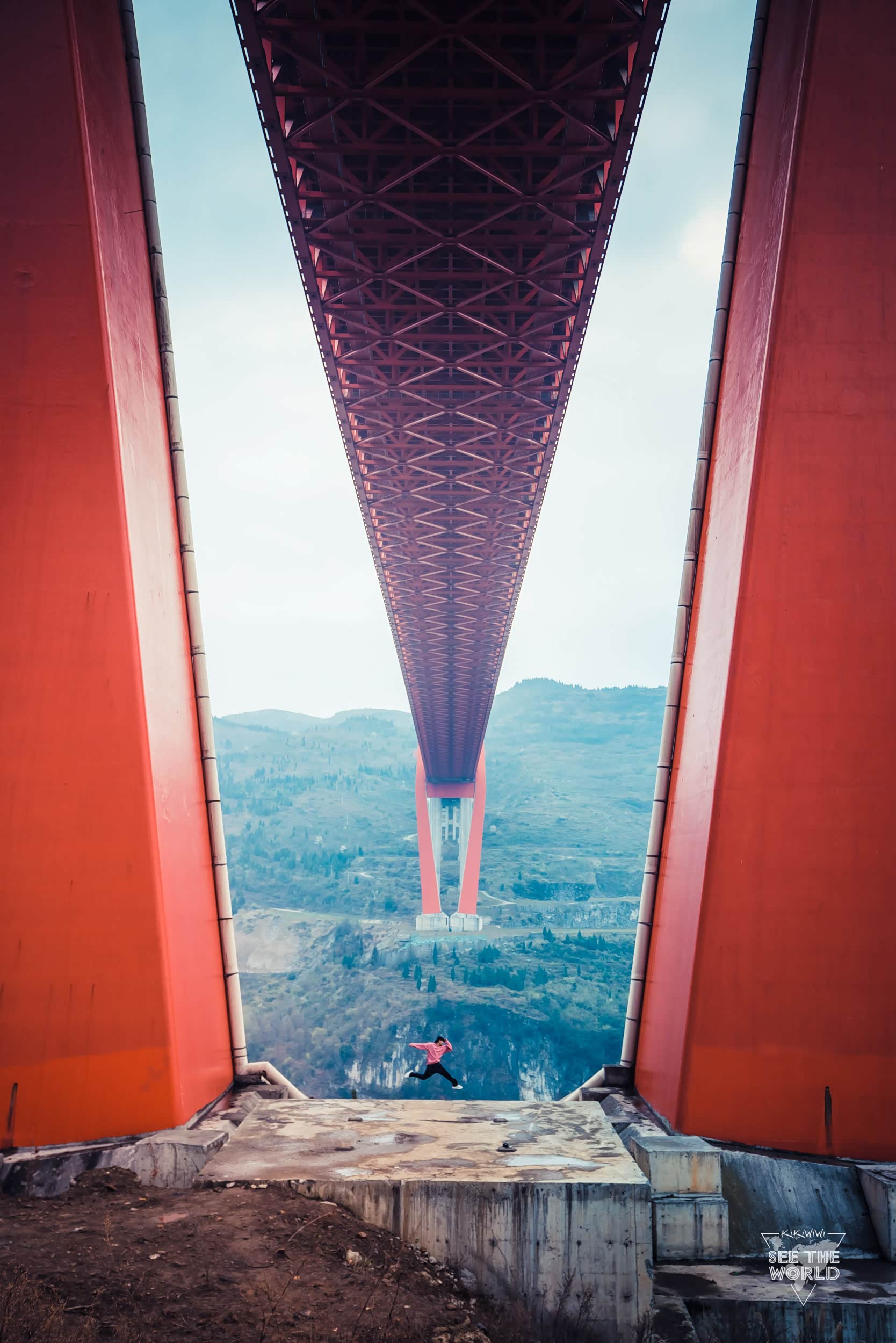 这里不像别的大桥没有停车点,这边的桥下沿途可以停车,还是比较方便的。不过轿车开山路要慢一点哟!站在桥下可以寻找到很多不同的拍照机位,利用大桥和自然环境的神奇搭配,拍出不一样的空间建筑感。