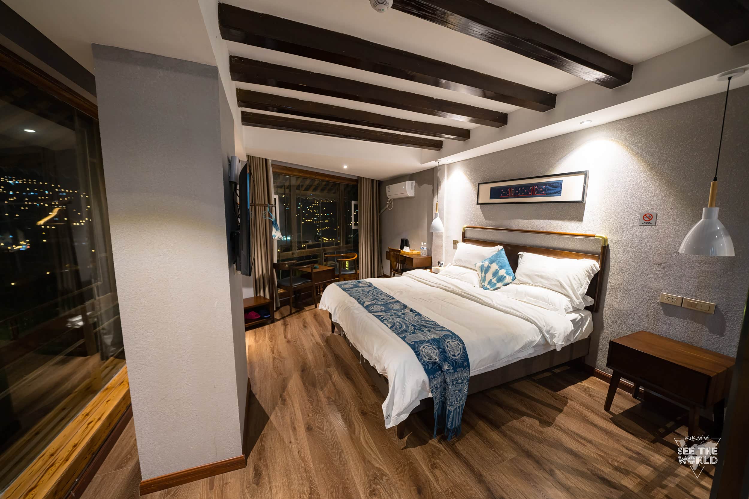 我们住的是270度观景大床房,超大的落地窗是欣赏苗寨风景的绝佳位置,如果预订的是普通的房间,酒店顶楼有一个大天台,可以将整个千户苗寨风景收入囊中,还可以傍晚来这里喝喝茶,欣赏夜景,拍照也是绝美的机位。推荐推荐!