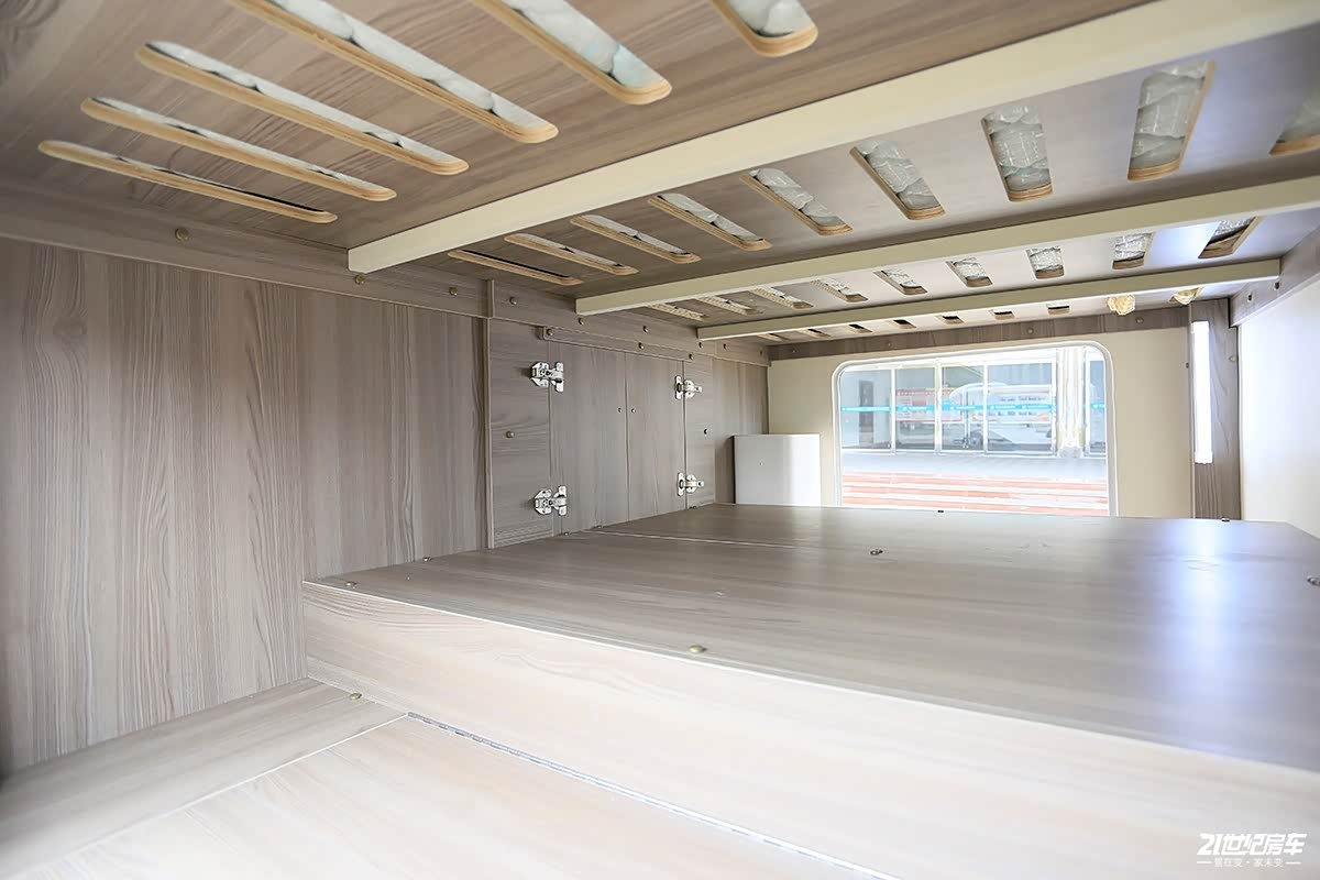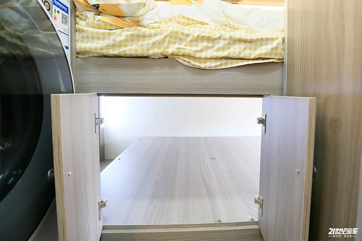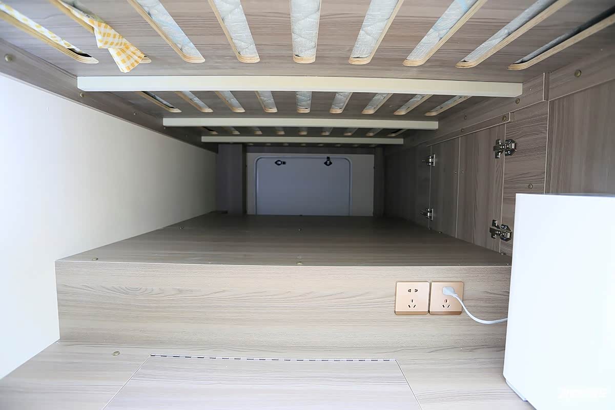 后横床底部直通车外贯通行李舱,不用上下车也能方便拿取行李物品,开口大小甚至可以容下一人穿过,所以不用担心拿取东西时候不方便的问题。
