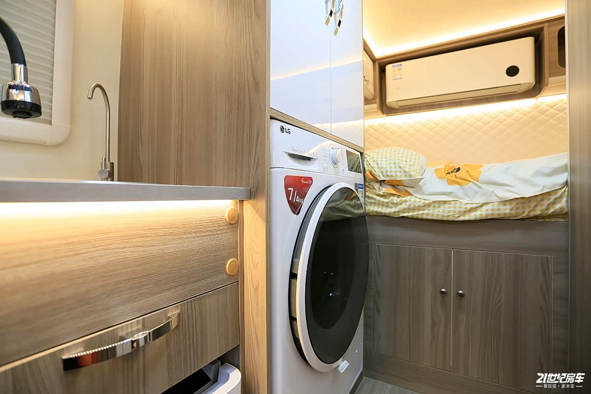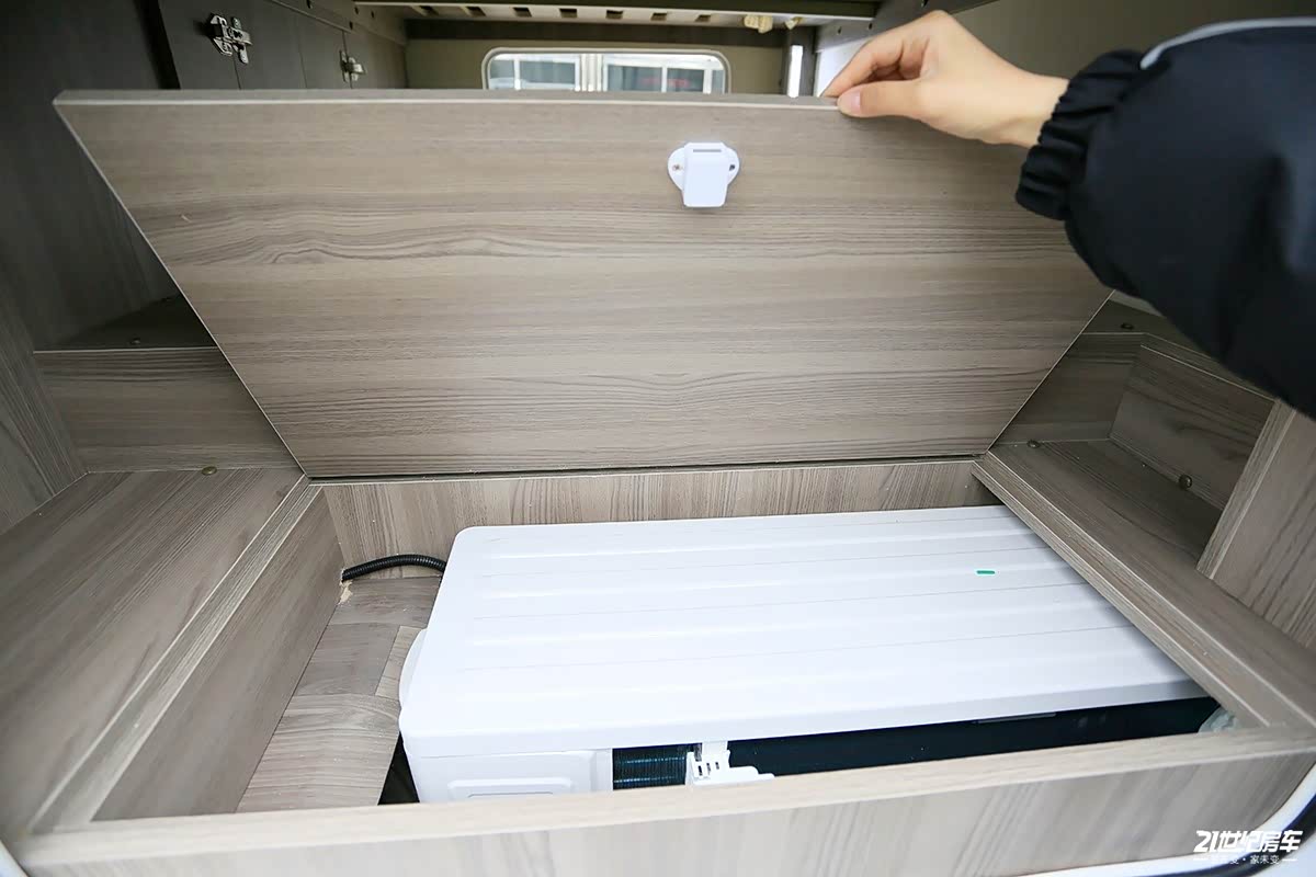 这一代新飞H300将此前配备的2.8kg洗衣机直接升级为LG品牌7kg烘洗一体洗衣机,在房车中应该是极为少有的,这时候平头房车的空间优势得以完全发挥出来。