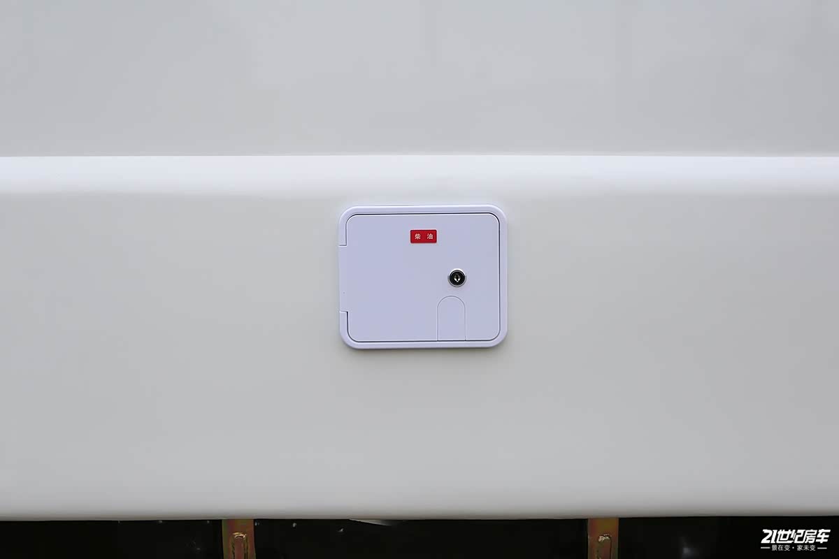 这款车的油箱在车身左侧靠中间的位置,油箱容积100升,塑料材质。