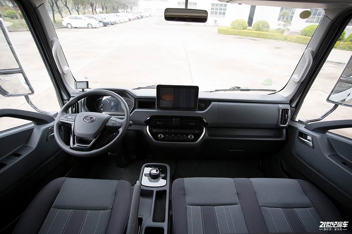 作为一款平头卡车型房车,坐在驾驶席座椅上获得的视野是轿车无法比拟的,左右两侧配备了两段式电动加热后视镜,右侧还配备了下视镜来弥补大车身造成的盲区。