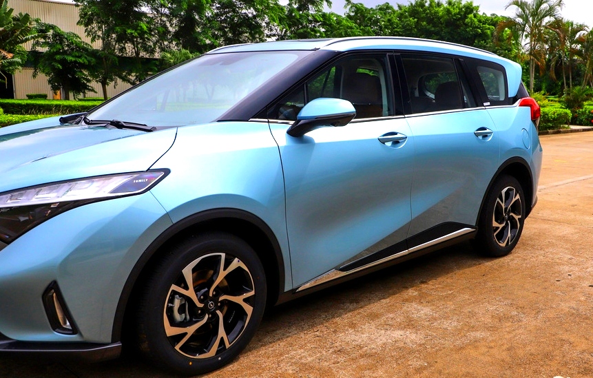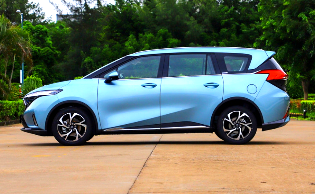 来到车身侧面,首先映入眼帘的,是它五幅式的花瓣轮毂,并且经过了双色的处理,看起来尤为动感。车身采用了不规则的双腰线设计,看起来非常的立体且饱满。在车尾的D柱部分,它还使用了黑色的隔断,营造出一种悬浮车顶的效果,虽然是一款MPV,但整体的造型却非常的前卫,在动感十足的同时,甚至还有点概念车的感觉。