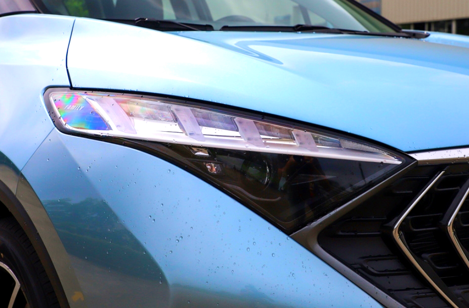 对于海马7X的外观,首先看它的前脸,大六边形的进气格栅,填充了括号式的镀铬中网,两侧与前大灯组相融合,整体表现的非常激进和犀利。猛的一看就像是海马的造型,不得不承认,它在前脸方面所运用的仿生学设计,还是非常令人惊艳的,有一种说不出的美。