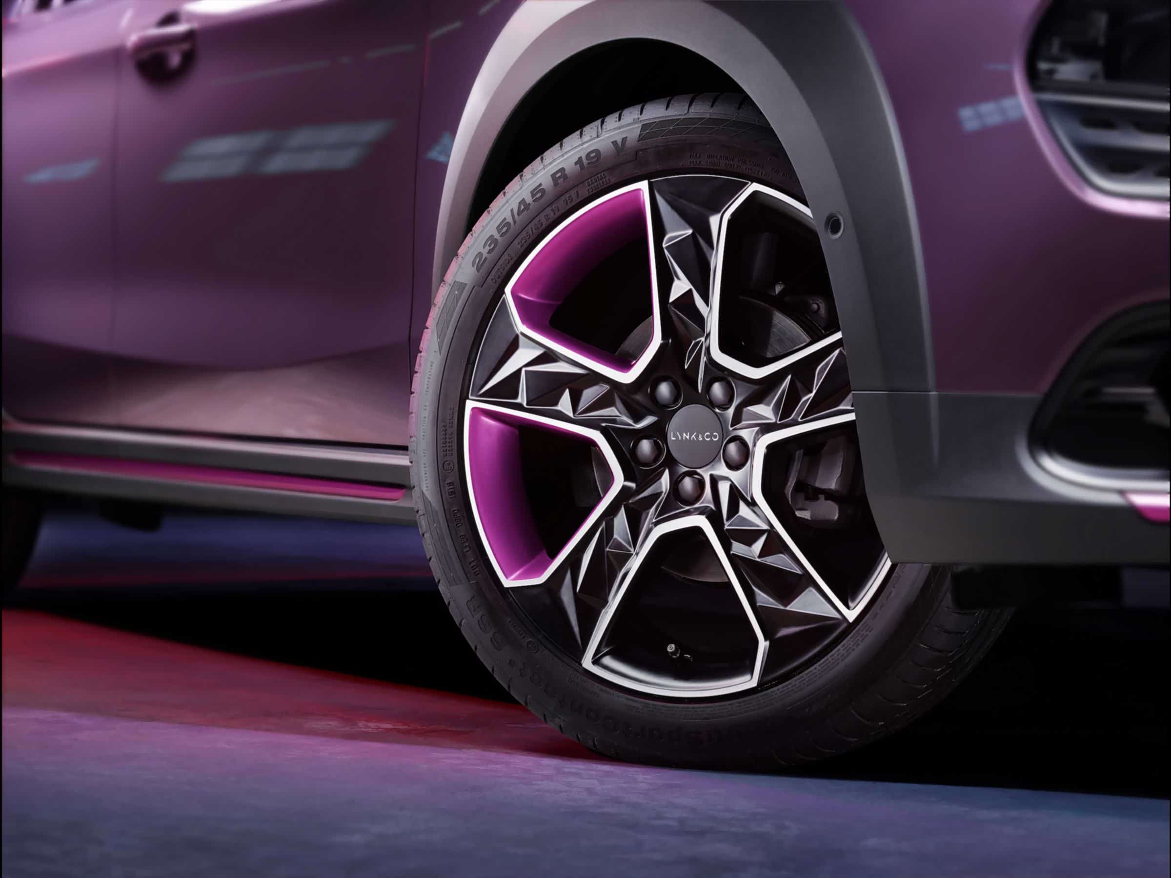 前脸采用了领克家族式的设计语言,两个LED日间行车灯被放置在机盖两侧,真正的照明大灯则被放在格栅两侧,和中间亮黑色格栅融为一体,下方则是黑橙撞色谁的运动包围,最下方还有一条带有红色点缀的运动前铲。