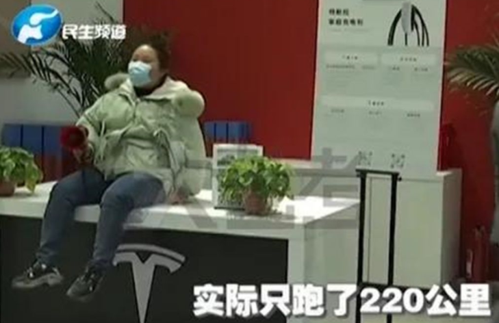 一位河南郑州的特斯拉女车主,在4S店手持大喇叭喊话维权:“买车时号称续航468公里,实际只能跑220公里,消费者购车时切勿上当!”