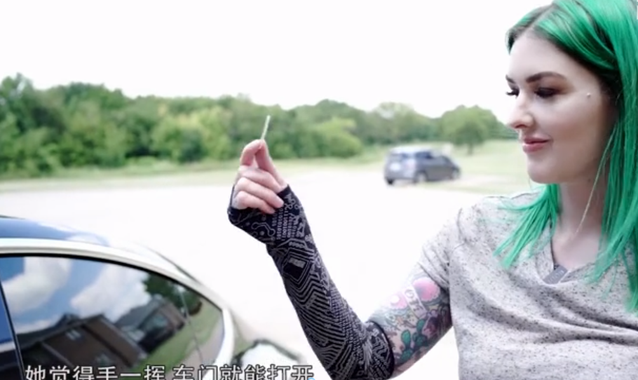 还有,为了不忘记带车钥匙,把车钥匙植入身体的美国特斯拉女车主,只因她觉得一挥手就能打开车,这非常酷...