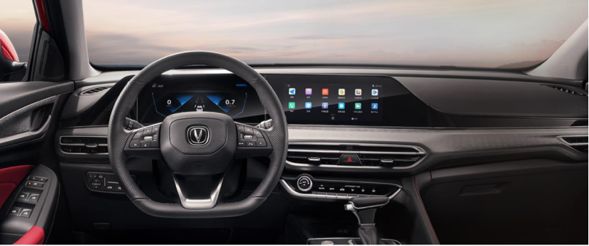 虽然价格不高,但内饰质感表现不错,整个座舱偏向驾驶员一侧倾斜,黑红色调则兼顾了成熟感和运动性。3.5寸液晶仪表盘+10.25英寸的中控液晶屏幕都是全系标配。