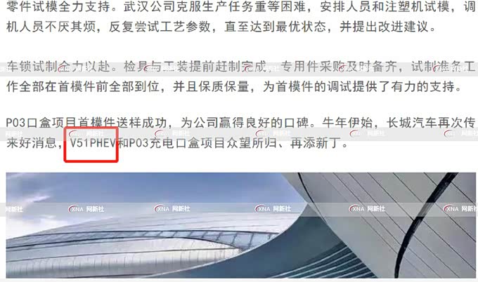 日前,网新社从相关渠道获悉,长城汽车正在打造代号为“V51 PHEV”的项目,据了解,此项目所代表的车型为魏派VV5插混版车型,未来上市后或将被命名为“ 玛奇朵PHEV”。