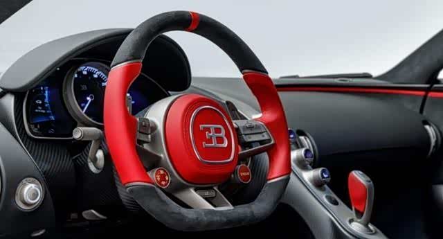 打开车门之后能够看到同样的进行了定制化设计的内饰,除了大面积黑色碳纤维面板,还有更多的红色真皮装饰,让原本比较沉闷的布加迪驾驶座舱变得更加激进。