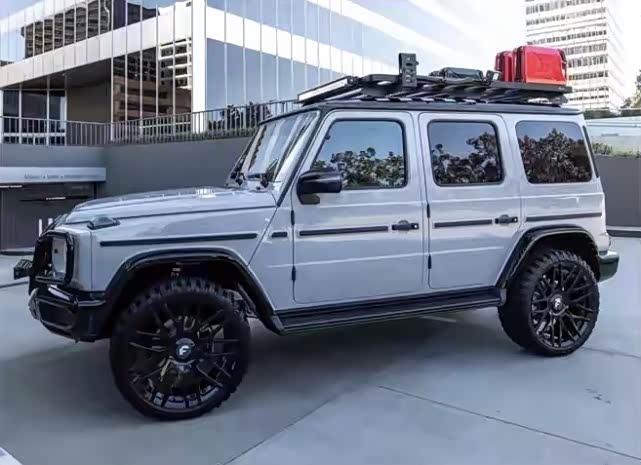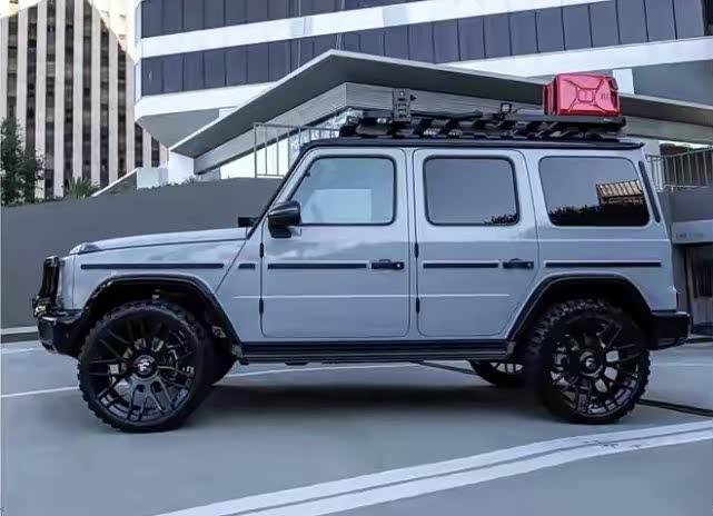 太帅了吧!要是拥有这样一台大奔G,那得有多少人羡慕啊。没错,一看图中的 奔驰G级是经过改装过的,不少看上去确实很吸引人。要知道奔驰G级本身就很帅气,不少的明星土豪都会必备一辆。在奔驰G级的基础上改装,是多好的一件事啊。这款车经过了改装之后,越野气息比之前更加浓厚。新车的前脸造型设计比较复古化,也是很多车友,尤其是年轻一代非常喜欢的。整个前脸还安装了防撞套件,熏黑的进气格栅把LOGO都掩盖掉了,不过两侧圆状式的LED大灯却很有个性。整款车的底盘设置的非常高,轮毂也进行了替换,采用的这种轮毂真的很少见,大尺寸熏黑多辐式造型,轮胎的性能也超级高。车顶部也是很有看点,整个车顶设计了全尺寸的金属旅行架,这也是越野车型必备的元素。尾部上的设计也超级上档次,尾窗设计的就很独特,整个尾部显得很平整,排气管道也进行了隐藏式布局。新车搭载的是一台4.0L V8涡轮增压发动机,与之匹配的是9速手自一体变速箱,并配四驱系统。