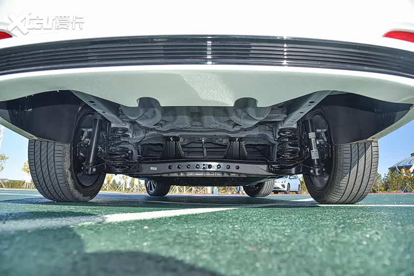 荣威R ER6采用前麦弗逊式独立悬挂和后扭力梁式非独立悬挂,没有使用后独立悬挂有些遗憾,不过这也是该级别纯电车型的主流配置。从图片中可以看到,车辆虽然将电池平铺于底盘,但并没有向下突出,在一定程度上保证了通过性。