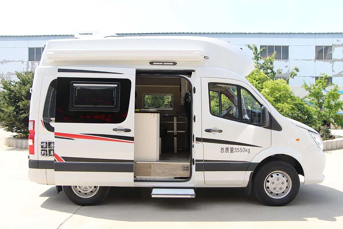 这款房车的整车尺寸为5.06×2.00×2.85(米),体型比较小巧,所以也满足C本准驾和蓝色牌照的标准,节假日和小轿车一样享受高速免费通行,平日的高速费标准也相同。动力系统搭载2.5T柴油发动机,匹配5速手动变速箱。车外配置也有亮点,就是配备了电动的遮阳棚,驻车以后可以将活动空间拓展到车外。