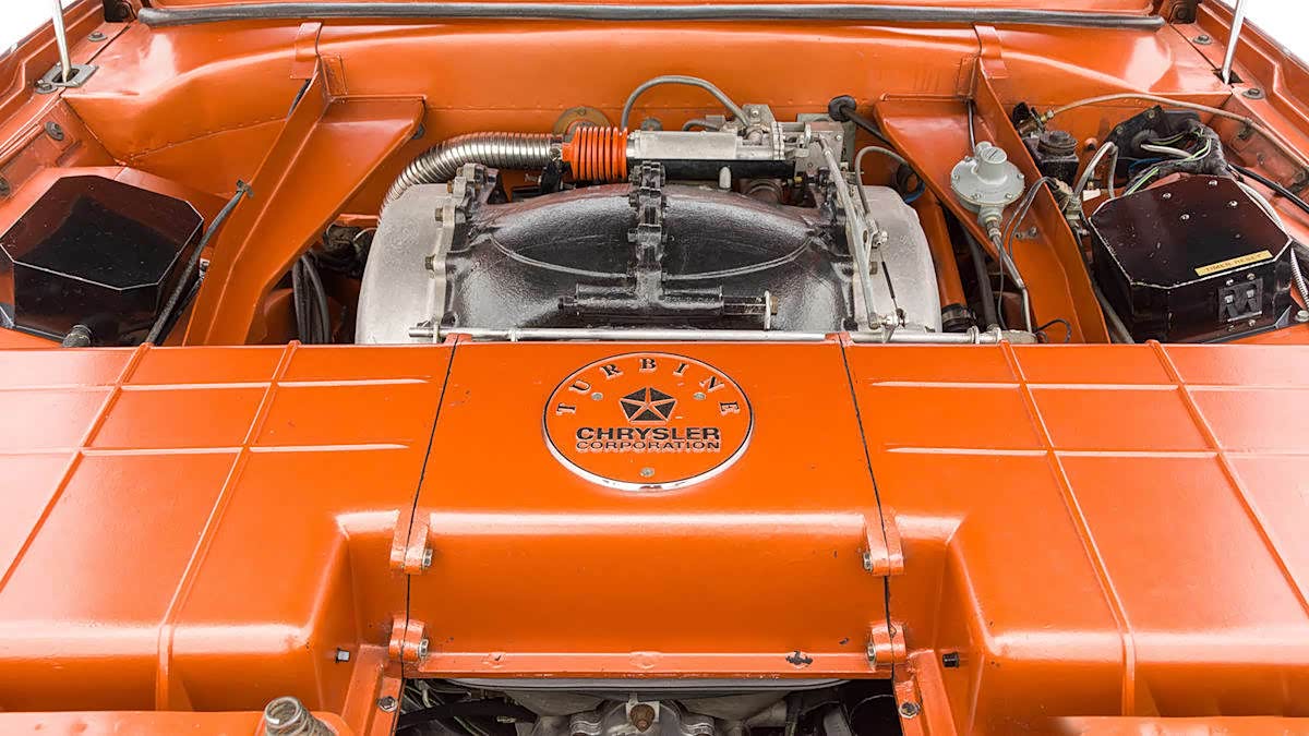 克莱斯勒Tubine Car采用前置后驱结构设计,打开发动机盖即可看到紧凑的克莱斯勒第四代CR2A燃气涡轮发动机。在3600rpm时可产生97kW的最大功率,最大扭矩达到了576Nm,发动机最高转速达到45700rpm,要知道,转速最高的F1活塞式发动机也仅为15000rpm。为了能够与3挡自动变速器配合,这台发动机的工作转速必须降至5360rpm,此时,在29℃气温下,0~100km/h加速时间为12s,当然,如果除去变速器的转速限制,0~100km/h加速时间能缩短到5s。