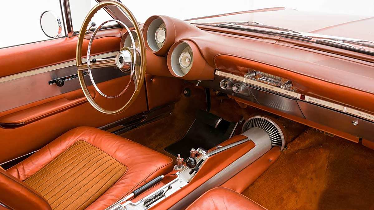 飞机元素一直延续到内饰,采用四个独立的桶形座椅设计,具有电动助力转向,电动制动器和电动升降车窗功能。在中控台上,采用红棕色的“ Frostfire Metallic”涂料完成,后来更名为“ Turbine Bronze”。