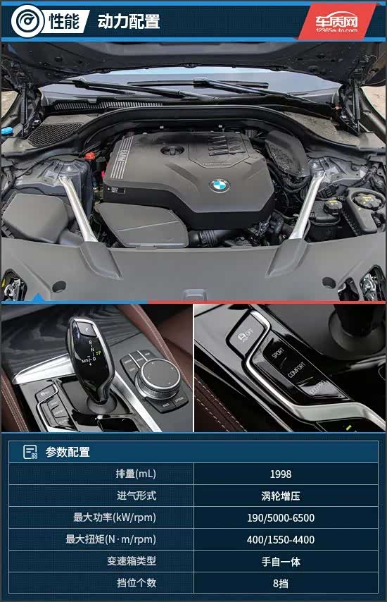 宝马6系GT上的这台2.0T发动机与宝马7系上的2.0T发动机一致,型号均为B48B20B,不过两台车的整备质量有所不同,所以在加速感受上会略有差别。当然就整体感受而言,这台2.0T发动机的动力储备绝对够用,并且油门踏板十分线性,属于踩多少有多少的那种。