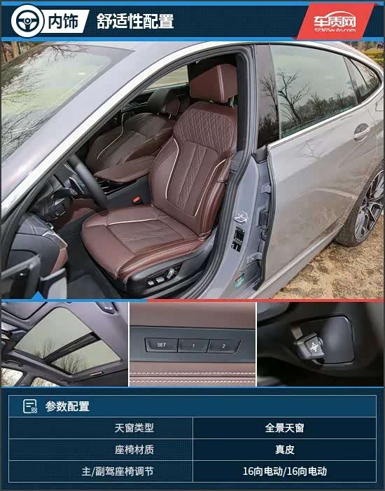 从“大旅行家版”车型命名方式不难看出,该车舒适性配置方面将会安排得面面俱到。该车配备了可开启全景天窗,且面积较大,能够为后排乘客带来不错的开阳感。前排座椅的表现非常出众,首先,新款5系全系采用仿皮的槽点并没有在这台6系GT上延续,新车采用了真皮座椅,内部填充物柔软;其次,配置上支持16向电动调节以及2组座椅记忆,能够为不同身材的消费者找到合适的坐姿。此外,新车全系方向盘均采用电动四向调节,并支持方向盘加热的选装,提升了档次感。