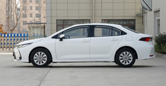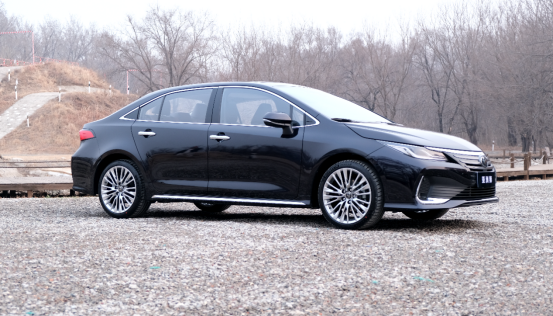 来到侧面,整体轮廓和卡罗拉很相似,尤其是侧窗的造型,基本只是比卡罗拉更长、更舒展了一些。但是从侧面来看,两款车的气势差距依然一眼可辨。