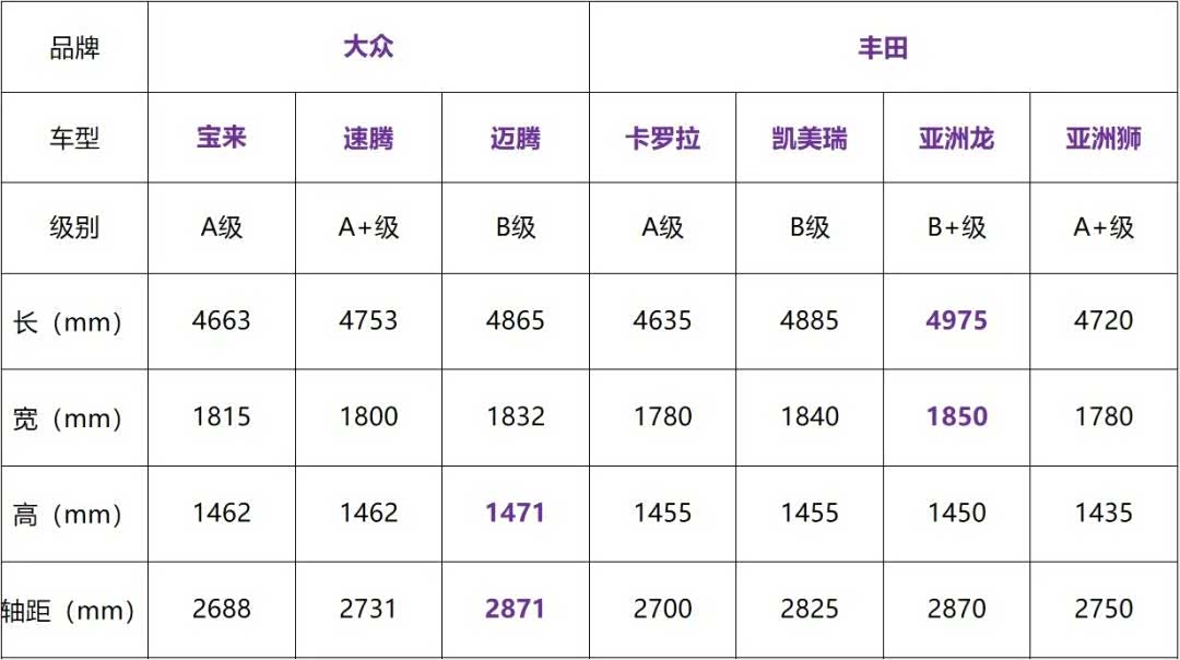 而亚洲狮尽管轴距和长度都比卡罗拉多了不少,但两款车型的车身宽度却完全一样,都是1780mm,而凯美瑞和亚洲龙的宽度,则达到了1840mm以上。