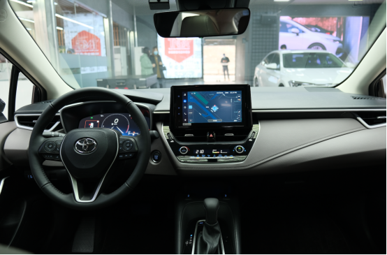 比如这块全液晶仪表,显示效果在同尺寸的仪表中不算出色,但是和卡罗拉那块机械仪表相比,科技感提升还是很明显的。