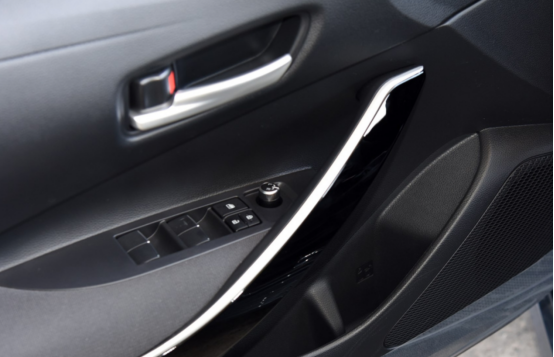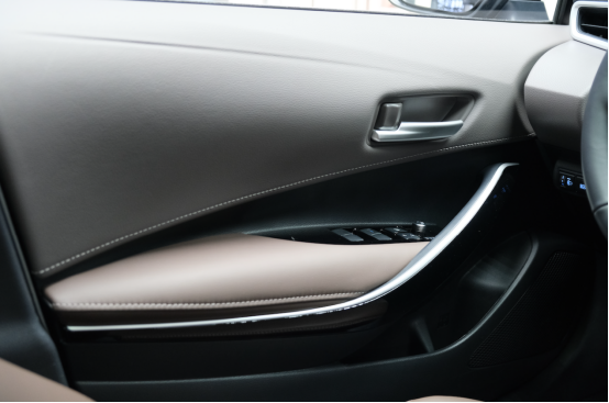 而来到车门内饰板这个部位,两款车型的差异更加明显。卡罗拉的整个车门内衬板,全部为硬塑料,甚至连经常接触到的扶手位置也没有丝毫装饰。而亚洲狮在这个部位除了缝线工艺外,还在扶手位置做了皮革包覆。仅仅从这一个部位的对比,就能看出很大的质感差距。