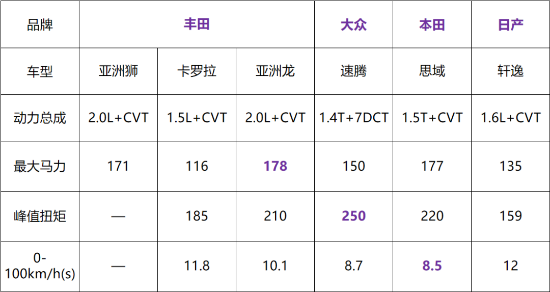 当然,抛开和卡罗拉的对比,亚洲狮本身也绝非无懈可击。和竞品相比,它的外观、内饰依然没有算不上特别突出,动力表现也仍然无法媲美思域、速腾、昂克赛拉等车型。