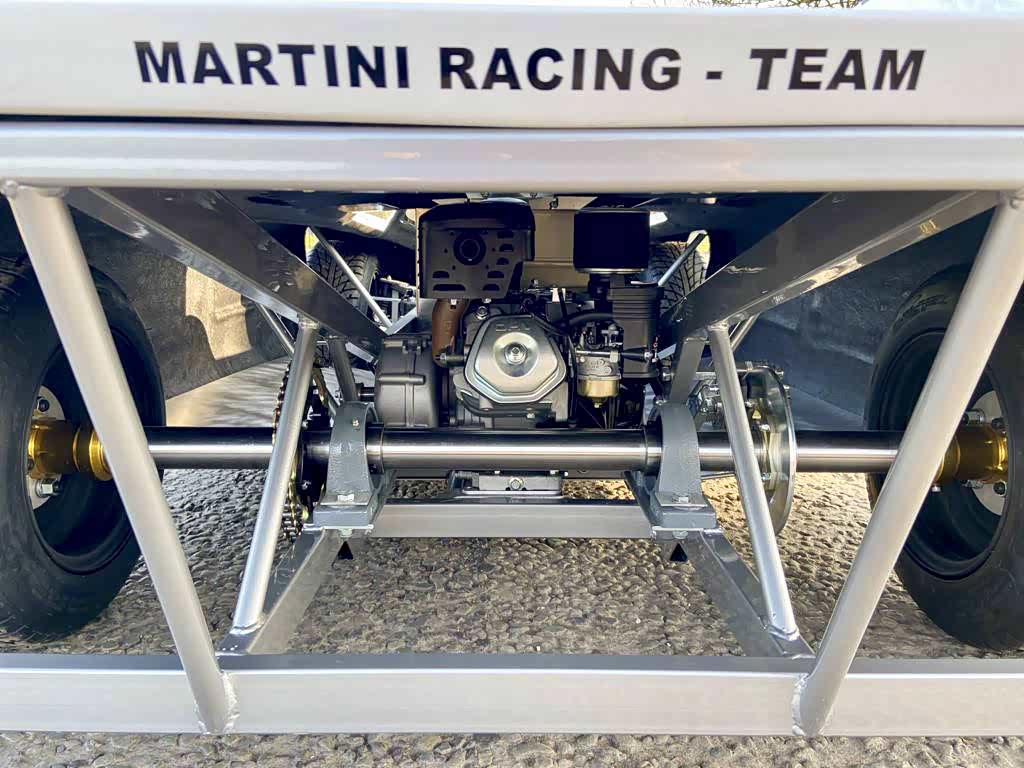 发动机是一台 9 bhp 230cc,通过一个带有湿式离合器的2-1减速变速箱向后轮提供动力。车体架在10英寸的轮子上,配有充气轮胎,还有一个可以快速拆除的方向盘,am头顶后部冷却风扇,就像全比例的汽车一样。